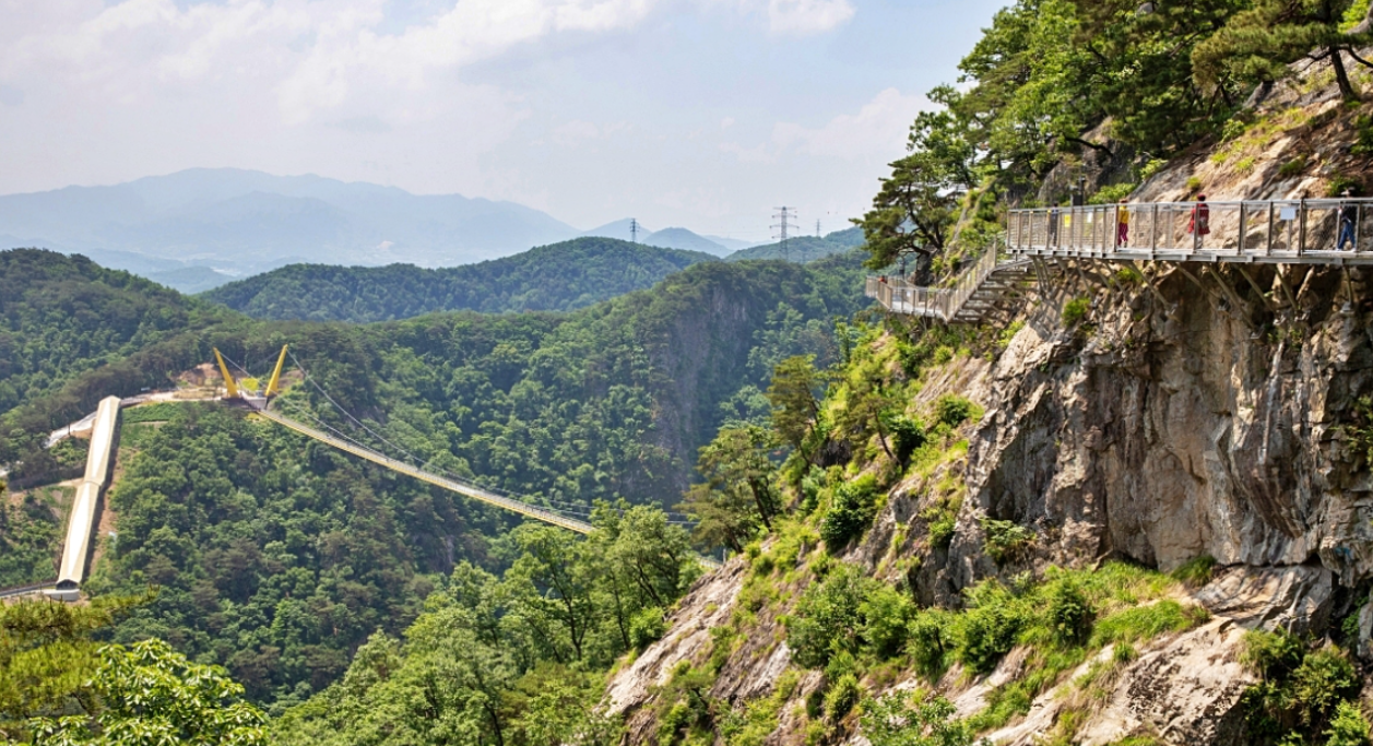 절벽 위에 설치된 360m 길이의 데크길을 걸으며